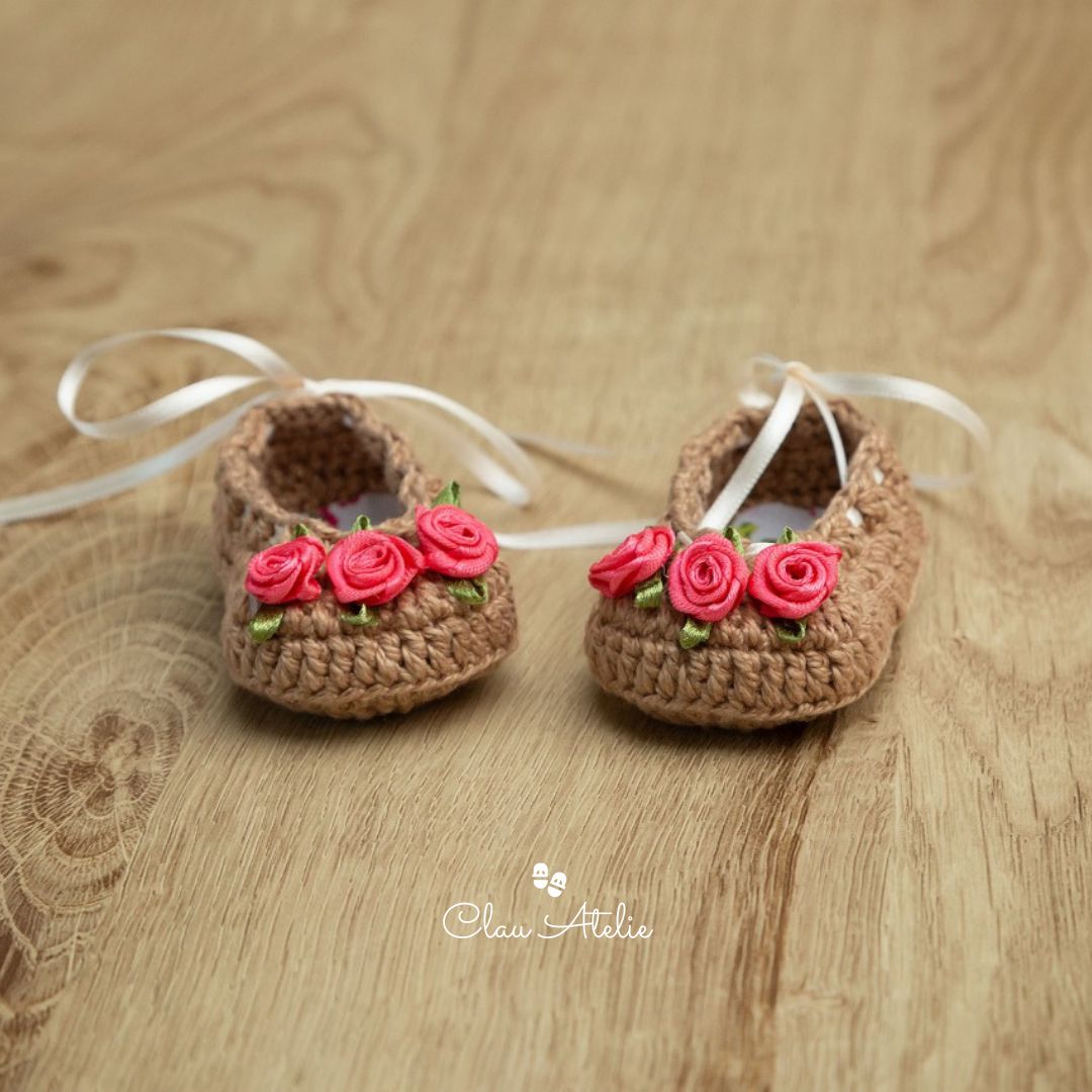 A sapatilha de croche traz o conforto, delicadeza e deixa o pezinho do bebe com muito charme.
